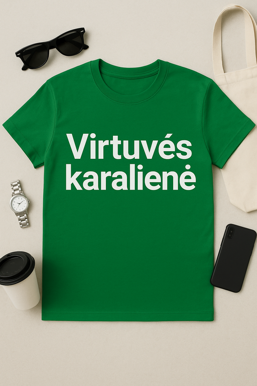 Kiekviena virtuvė turi savo valdovę – ir tai esi TU! Šie linksmi ir stilingi „Virtuvės karalienė“ marškinėliai ne tik privers tave šypsotis kas kartą atsistojus prie puodų, bet ir parodys visam pasauliui (ar bent jau šeimai), kad virtuvės imperiją valdo neprilygstama kulinarijos diva. Minkšti, patogūs ir su doze gero humoro – tai tavo naujas mėgstamiausias aprangos akcentas. Tinka ir kulinariniams šedevrams kurti, ir tiesiog pasipuikuoti prie kavos puodelio!