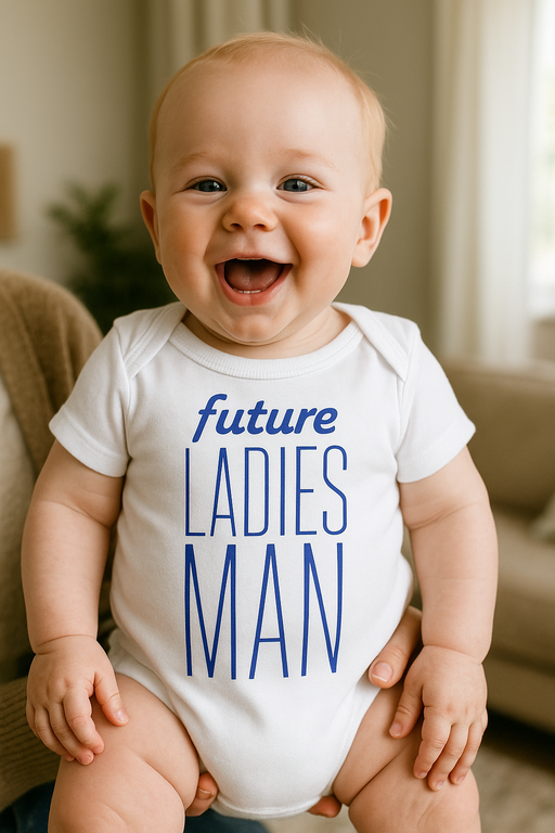 Prisiveržkite diržus, atvyksta mini širdžių ėdikas! 😎 Smėlinukas su užrašu future LADIES MAN jau dabar rašo jūsų mažylio meilės istoriją.