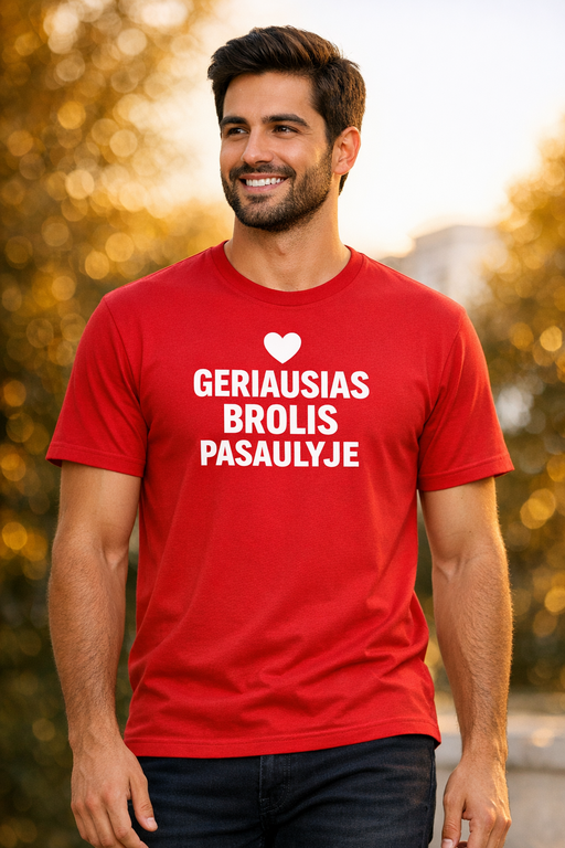 Brolis mėgsta pasigirti? Parodyk jam „oficialų“ įrodymą ryškiai raudoną! Marškinėliai su užrašu GERIAUSIAS BROLIS PASAULYJE matosi iš toli ir kelia šypseną.