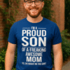 Šie juodi moteriški marškinėliai trumpomis rankovėmis aiškiai sako: ‘I’M A PROUD DAUGHTER OF A FREAKING AWESOME MOM YES, SHE BOUGHT ME THIS SHIRT‘. Tobuli juokams, fotkėms ir išdideliems apkabinimams – nes geriausios mamos nusipelno reklamos, o geriausios dukros – patogiai išreikštos pagyros.