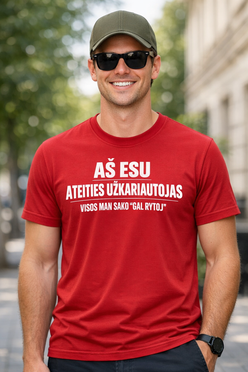 Juokingi marškinėliai „Aš esu ateities užkariautojas, visos man sako – gal rytoj“